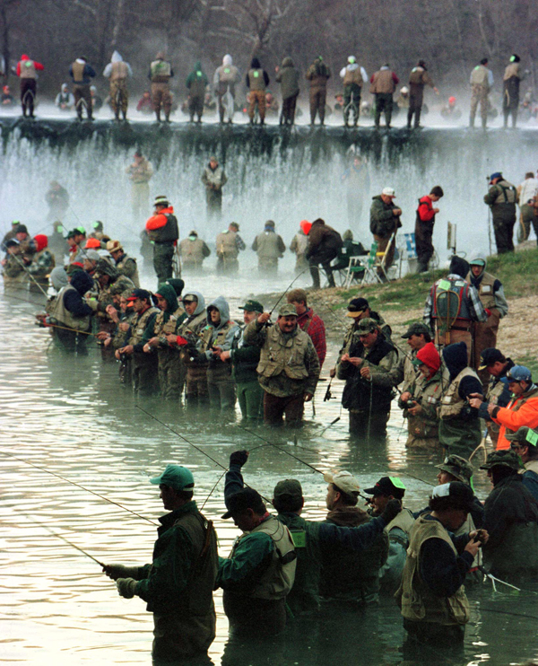 Of all the years I have covered opening day for trout fishing in Missouri, one particular shot also taken at Bennett Spring seemed to capture an unusual amount of attention from editors across the country.