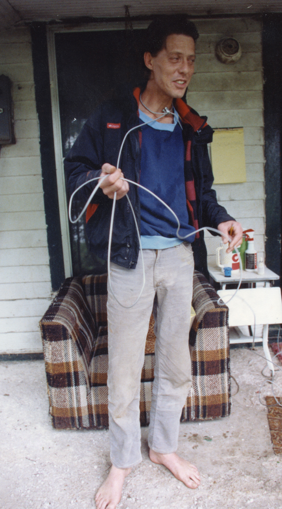 Cabled to his house without access to tobacco or tools to release the cable, Rick attempts to kick the smoking habit. His only companion is a dog who is free to roam. (Copyright John S. Stewart LEFTeyeSTORIES.com)